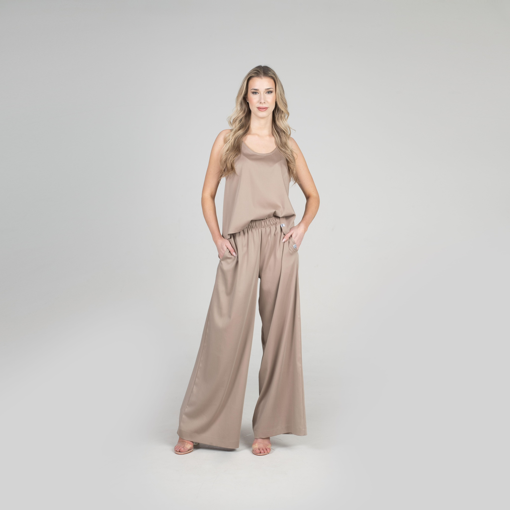 V kombinaci s naším tílkem ze stejného materiálu vytvoříte stylový, dokonale sladěný komplet do města i na večerní posezení.