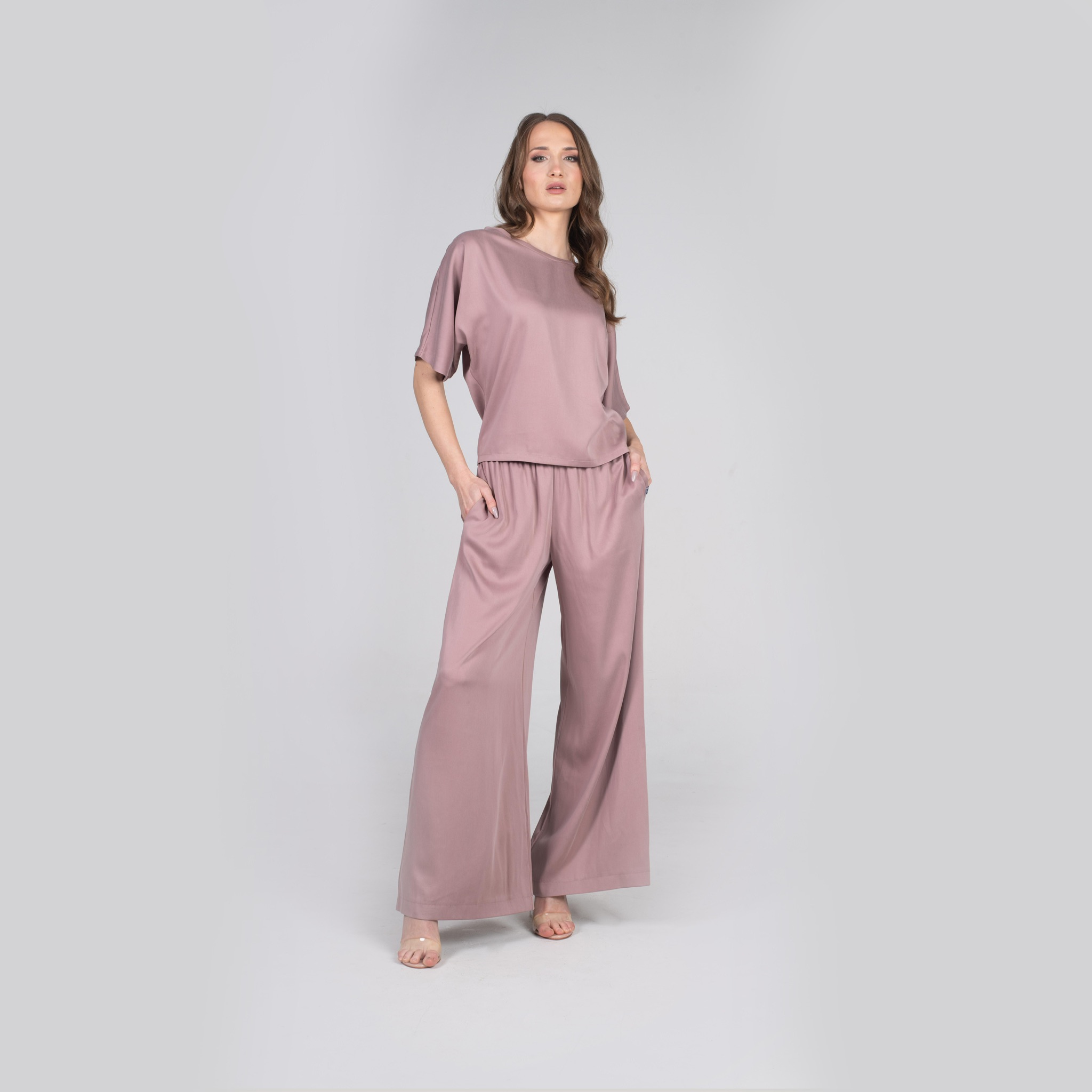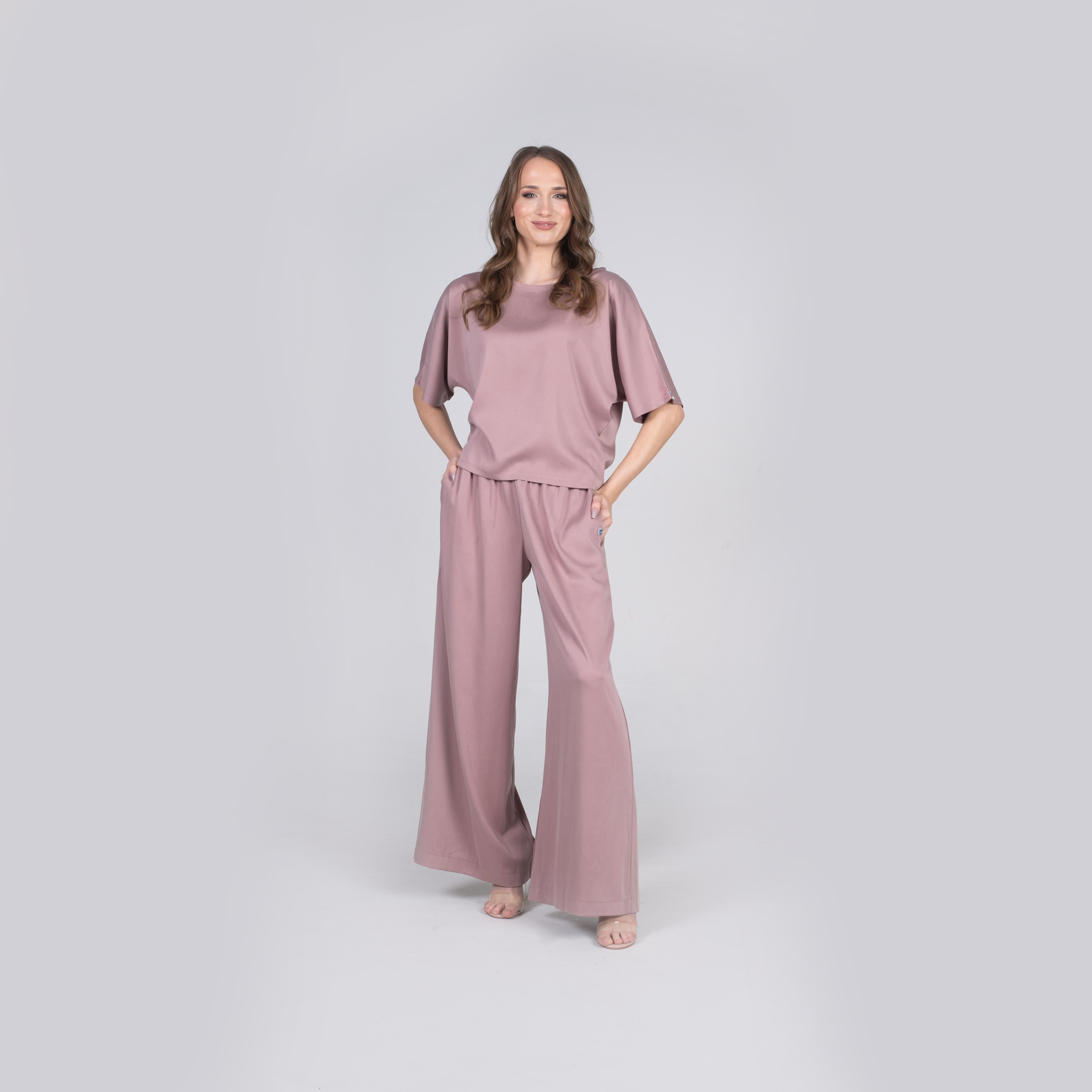 Kalhoty se širokými nohavicemi mají oblíbený střih, který působí uvolněně a zároveň elegantně. Jsou ušité z příjemného, splývavého a chladivého materiálu, ve kterém se budete cítit skvěle po celý den.
