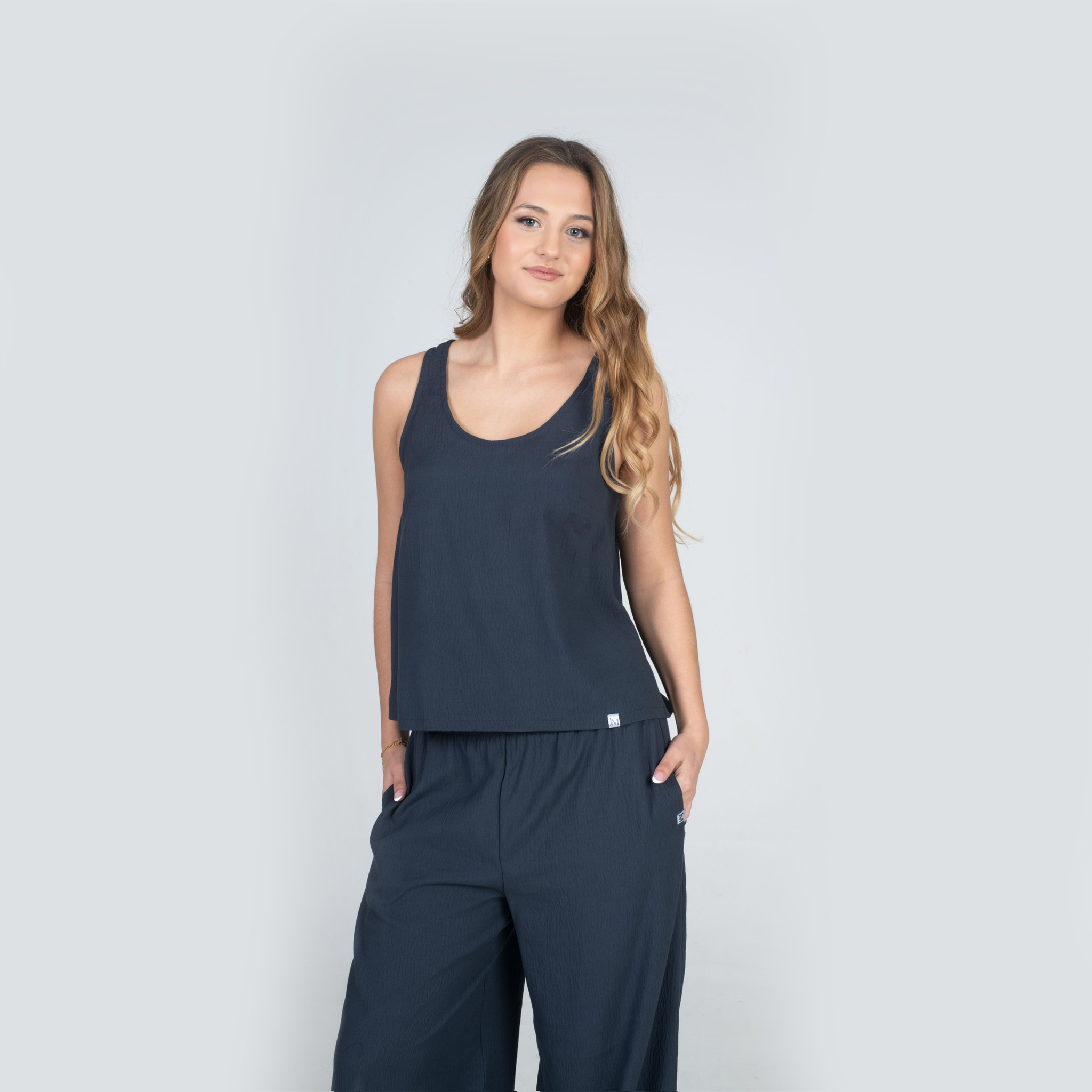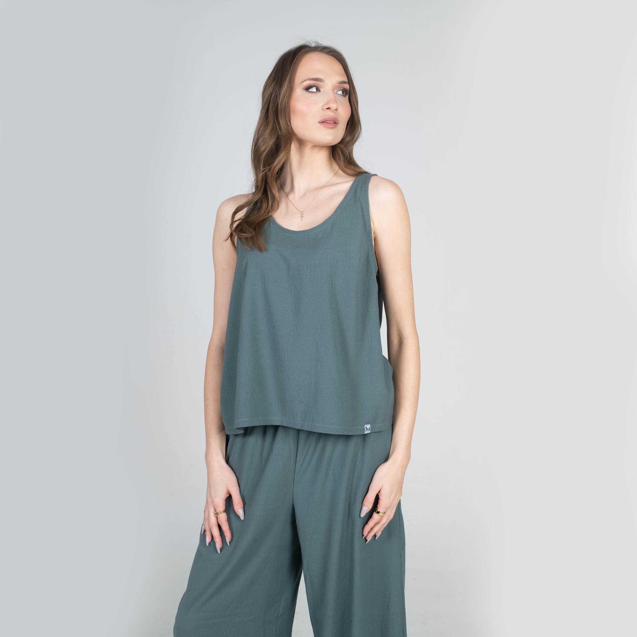 Tílko s promyšleným, lehce širším střihem působí vzdušně a elegantně, krásně drží siluetu bez zbytečného obepínání.